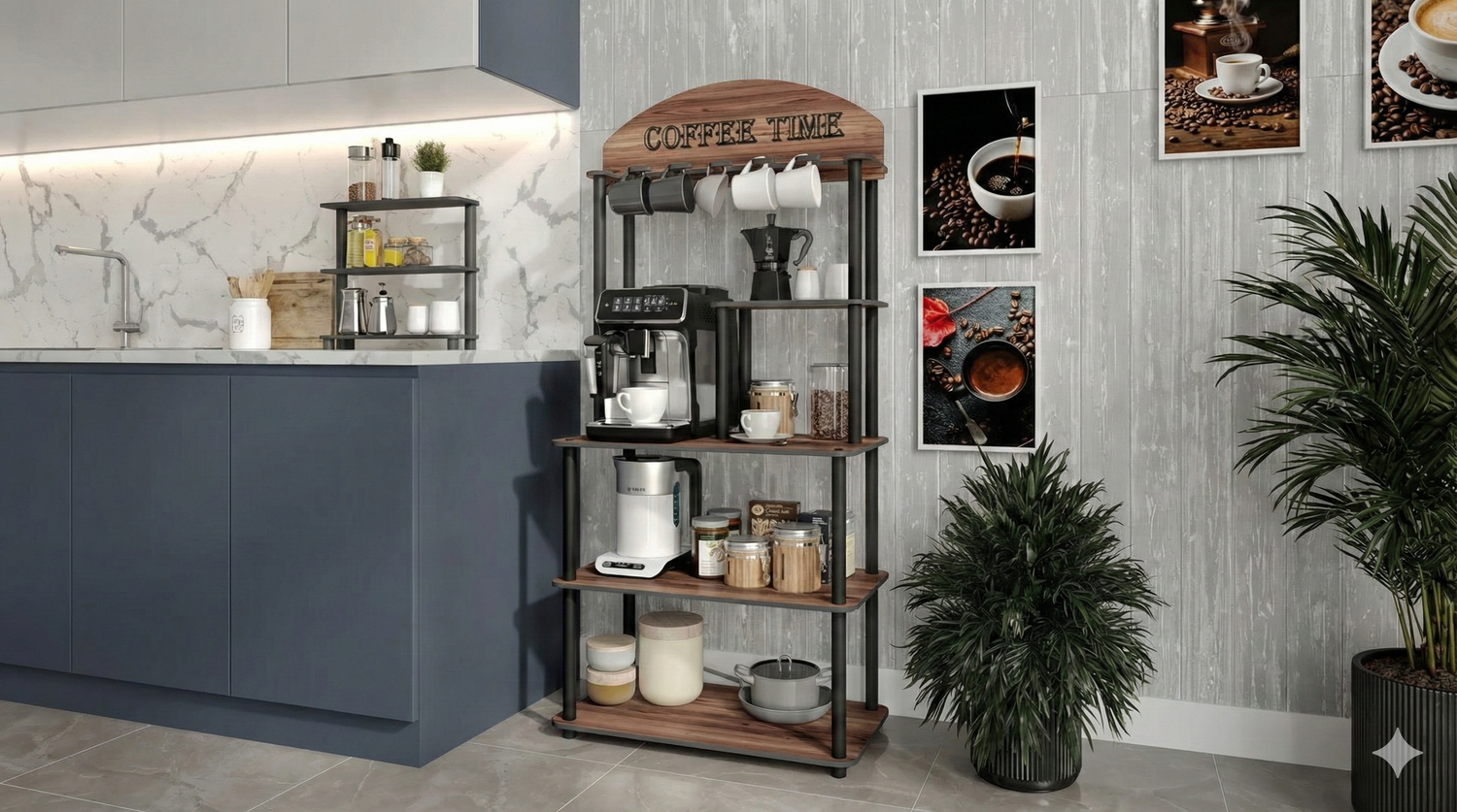 messer Coffee Tıme Çok Amaçlı Dolap Kahve Köşesi Madran Ceviz Tüm Kahve Makineleri